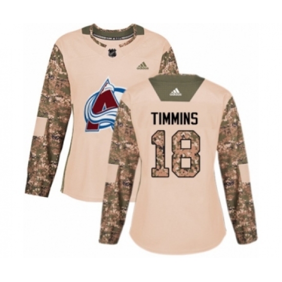 >Women's Adidas Colorado Avalanche #18 Conor Timmins Authentic Camo Veterans Day Practice NHL Jersey