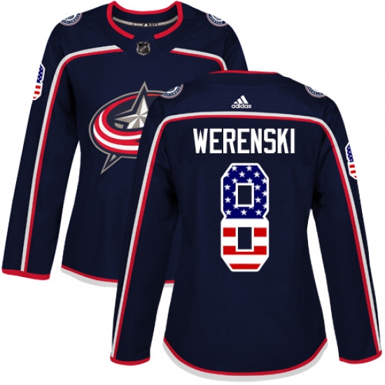 Home>NHL>Columbus Blue Jackets>Zach Werenski>Women's Adidas Columbus Blue Jackets #8 Zach Werenski Authentic Navy Blue USA Flag Fashion NHL Jersey