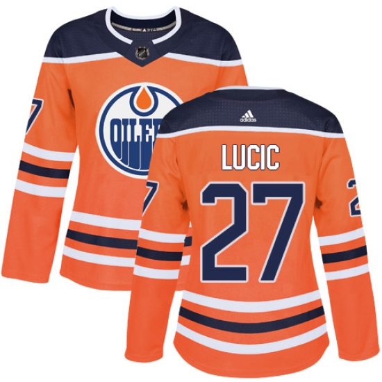 Home>NHL>Edmonton Oilers>Milan Lucic>Women's Adidas Edmonton Oilers #27 Milan Lucic Authentic Orange Home NHL Jersey