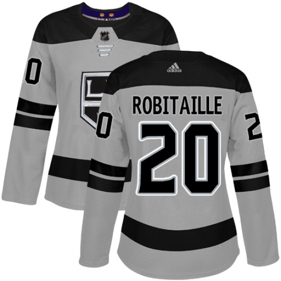 >Women's Adidas Los Angeles Kings #20 Luc Robitaille Authentic Gray Alternate NHL Jersey