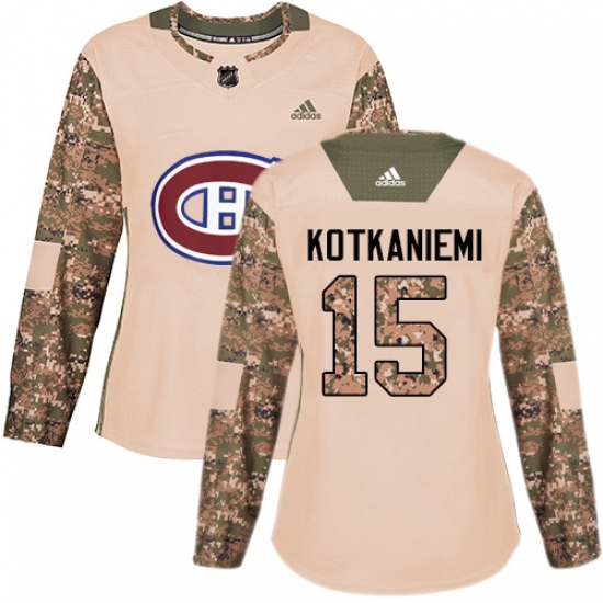 Women's Adidas Montreal Canadiens #15 Jesperi Kotkaniemi Authentic Camo Veterans Day Practice NHL Jersey