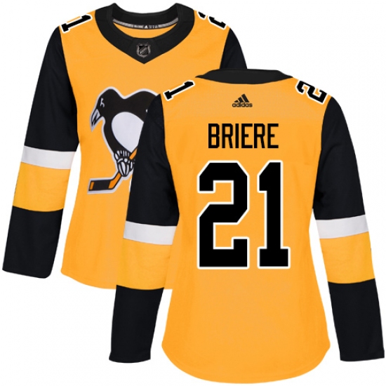 >Women's Adidas Pittsburgh Penguins #21 Michel Briere Authentic Gold Alternate NHL Jersey