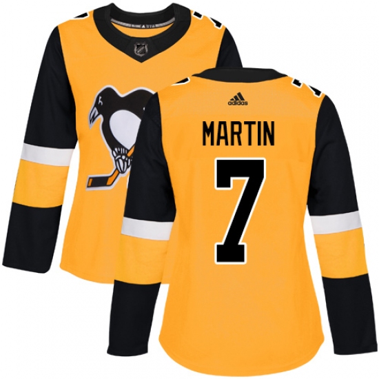 Women's Adidas Pittsburgh Penguins #7 Paul Martin Authentic Gold Alternate NHL Jersey