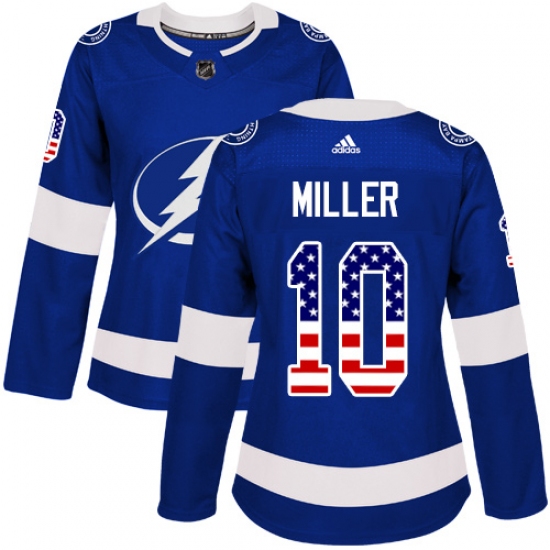 Women's Adidas Tampa Bay Lightning #10 J.T. Miller Authentic Blue USA Flag Fashion NHL Jersey