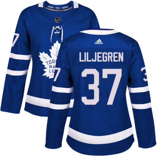 Women's Adidas Toronto Maple Leafs #37 Timothy Liljegren Authentic Royal Blue Home NHL Jersey