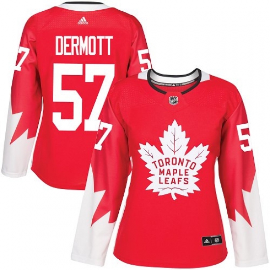 Home>NHL>Toronto Maple Leafs>Travis Dermott>Women's Adidas Toronto Maple Leafs #57 Travis Dermott Authentic Red Alternate NHL Jersey
