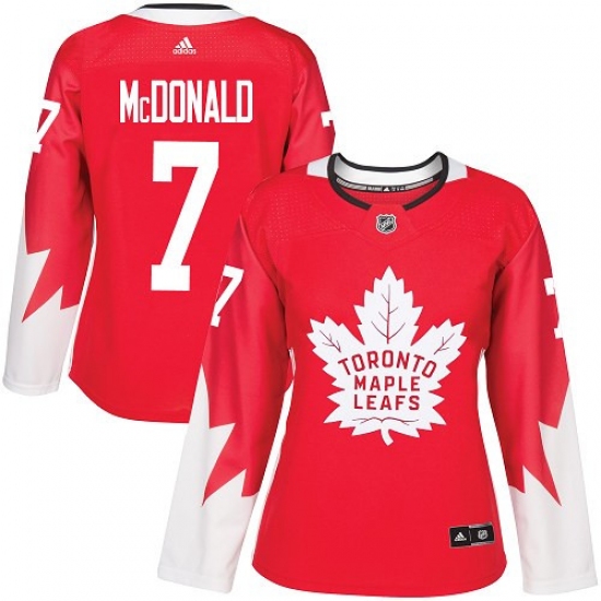 Home>NHL>Toronto Maple Leafs>Lanny McDonald>Women's Adidas Toronto Maple Leafs #7 Lanny McDonald Authentic Red Alternate NHL Jersey