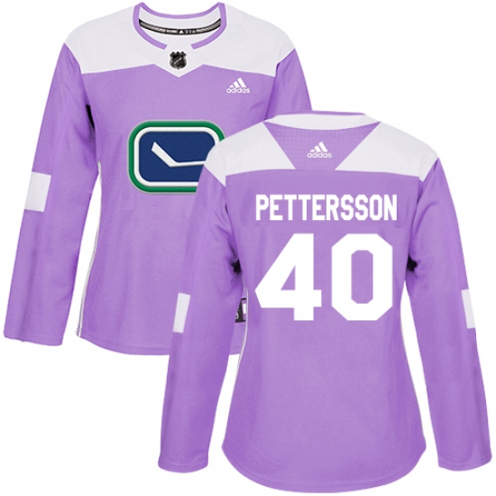 >Women's Adidas Vancouver Canucks #40 Elias Pettersson Purple Authentic Fights Cancer Stitched NHL Jersey