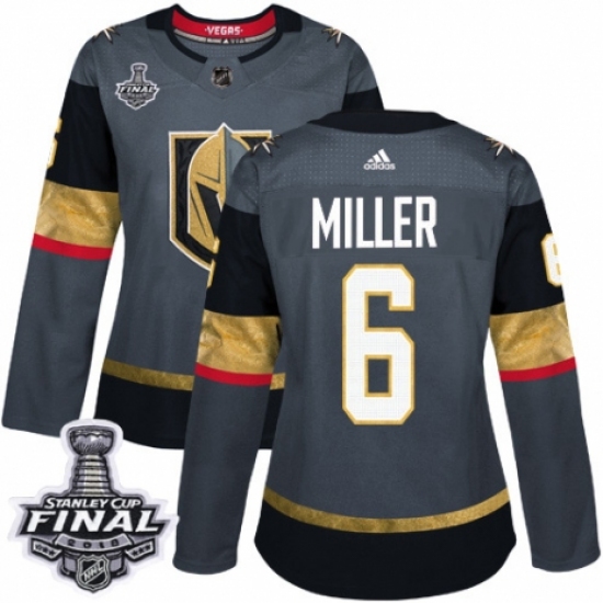 Women's Adidas Vegas Golden Knights #6 Colin Miller Authentic Gray Home 2018 Stanley Cup Final NHL Jersey