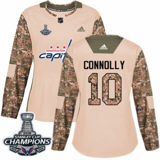 >Women's Adidas Washington Capitals #10 Brett Connolly Authentic Camo Veterans Day Practice 2018 Stanley Cup Final Champions NHL Jersey