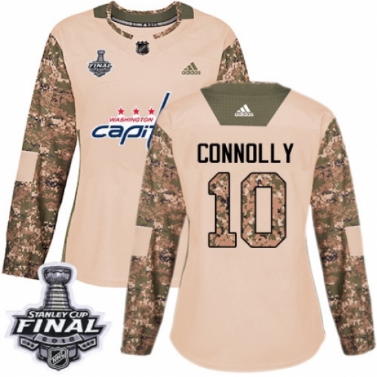 >Women's Adidas Washington Capitals #10 Brett Connolly Authentic Camo Veterans Day Practice 2018 Stanley Cup Final NHL Jersey