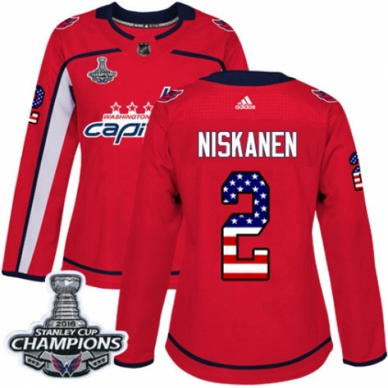Women's Adidas Washington Capitals #2 Matt Niskanen Authentic Red USA Flag Fashion 2018 Stanley Cup Final Champions NHL Jersey