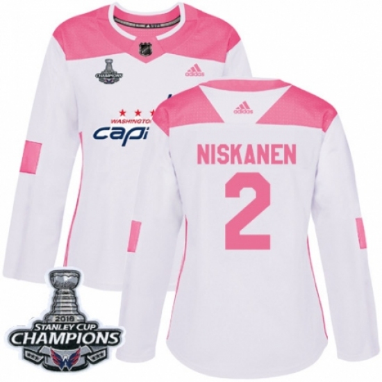 Women's Adidas Washington Capitals #2 Matt Niskanen Authentic White Pink Fashion 2018 Stanley Cup Final Champions NHL Jersey