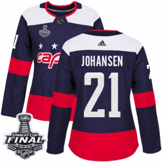 Women's Adidas Washington Capitals #21 Lucas Johansen Authentic Navy Blue 2018 Stadium Series 2018 Stanley Cup Final NHL Jersey