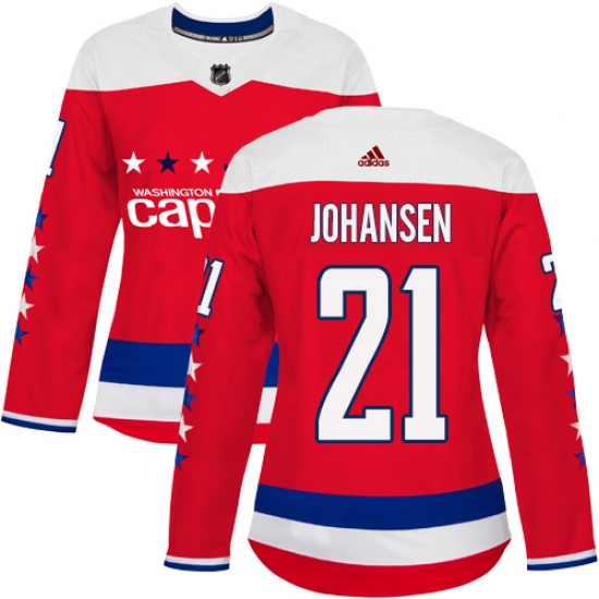Women's Adidas Washington Capitals #21 Lucas Johansen Authentic Red Alternate NHL Jersey