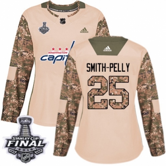 Women's Adidas Washington Capitals #25 Devante Smith-Pelly Authentic Camo Veterans Day Practice 2018 Stanley Cup Final NHL Jersey
