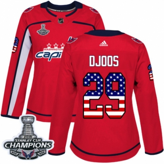 Women's Adidas Washington Capitals #29 Christian Djoos Authentic Red USA Flag Fashion 2018 Stanley Cup Final Champions NHL Jersey