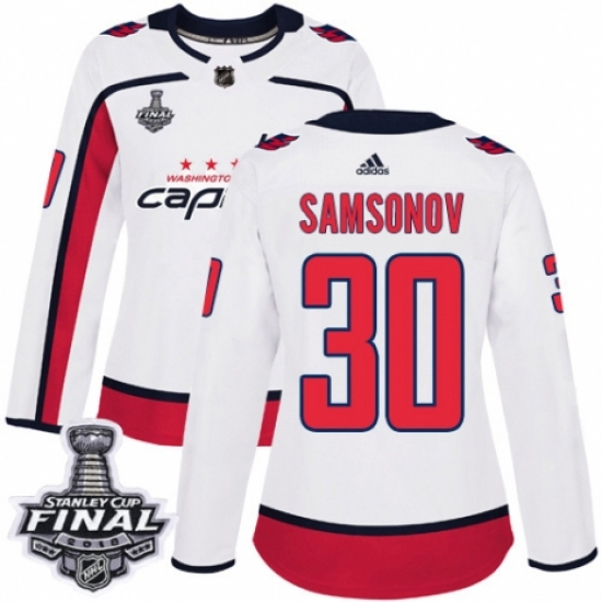 Women's Adidas Washington Capitals #30 Ilya Samsonov Authentic White Away 2018 Stanley Cup Final NHL Jersey
