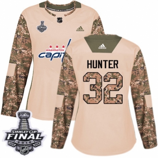 Women's Adidas Washington Capitals #32 Dale Hunter Authentic Camo Veterans Day Practice 2018 Stanley Cup Final NHL Jersey