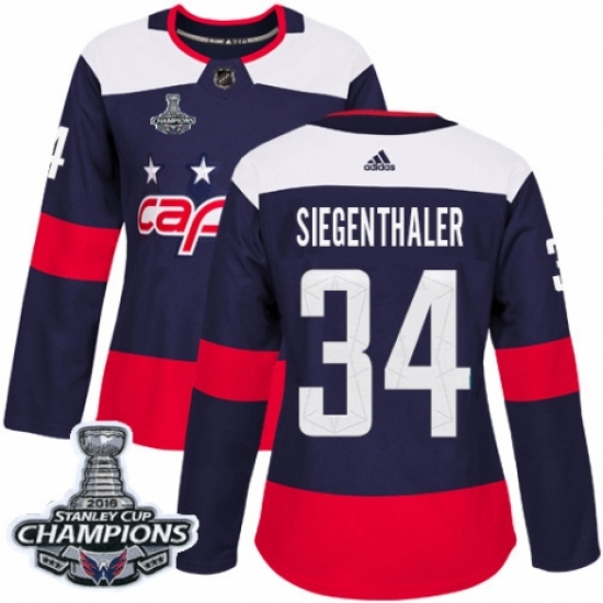 >Women's Adidas Washington Capitals #34 Jonas Siegenthaler Authentic Navy Blue 2018 Stadium Series 2018 Stanley Cup Final Champions NHL Jersey