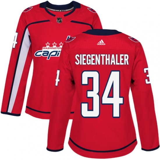 Home>NHL>Washington Capitals>Jonas Siegenthaler>Women's Adidas Washington Capitals #34 Jonas Siegenthaler Premier Red Home NHL Jersey