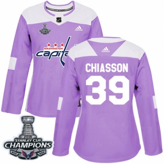 >Women's Adidas Washington Capitals #39 Alex Chiasson Authentic Purple Fights Cancer Practice 2018 Stanley Cup Final Champions NHL Jersey