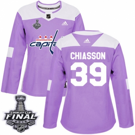 Women's Adidas Washington Capitals #39 Alex Chiasson Authentic Purple Fights Cancer Practice 2018 Stanley Cup Final NHL Jersey