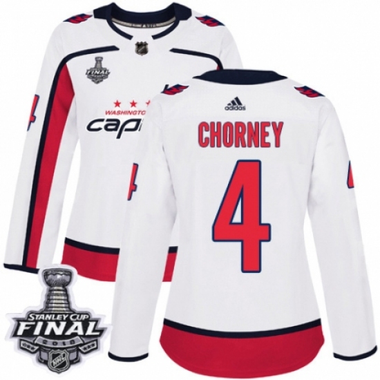 Women's Adidas Washington Capitals #4 Taylor Chorney Authentic White Away 2018 Stanley Cup Final NHL Jersey