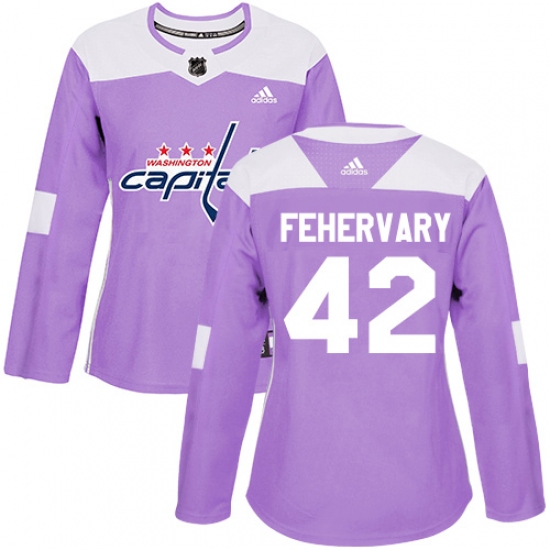 >Women's Adidas Washington Capitals #42 Martin Fehervary Authentic Purple Fights Cancer Practice NHL Jersey