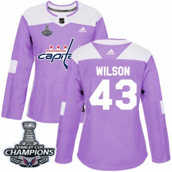 Women's Adidas Washington Capitals #43 Tom Wilson Authentic Purple Fights Cancer Practice 2018 Stanley Cup Final Champions NHL Jersey