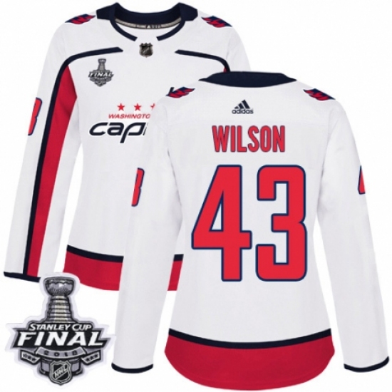 Women's Adidas Washington Capitals #43 Tom Wilson Authentic White Away 2018 Stanley Cup Final NHL Jersey
