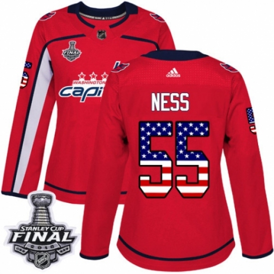 Women's Adidas Washington Capitals #55 Aaron Ness Authentic Red USA Flag Fashion 2018 Stanley Cup Final NHL Jersey