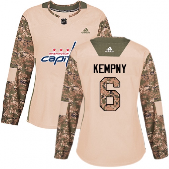 >Women's Adidas Washington Capitals #6 Michal Kempny Authentic Camo Veterans Day Practice NHL Jersey