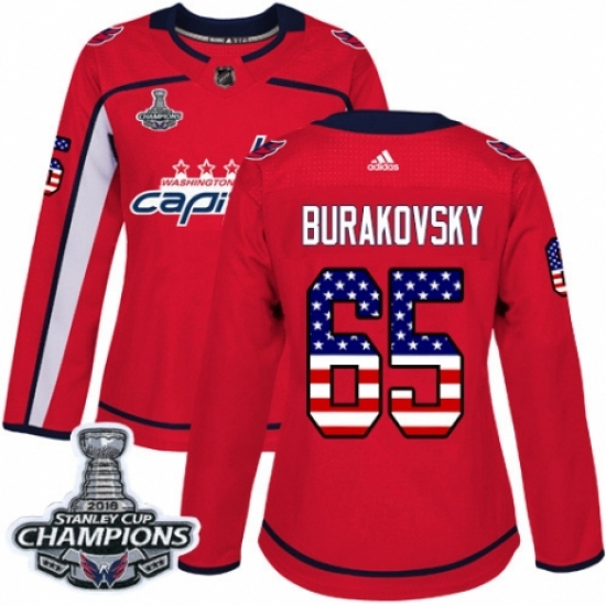 Women's Adidas Washington Capitals #65 Andre Burakovsky Authentic Red USA Flag Fashion 2018 Stanley Cup Final Champions NHL Jersey