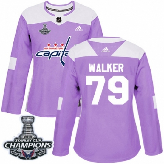 Women's Adidas Washington Capitals #79 Nathan Walker Authentic Purple Fights Cancer Practice 2018 Stanley Cup Final Champions NHL Jersey