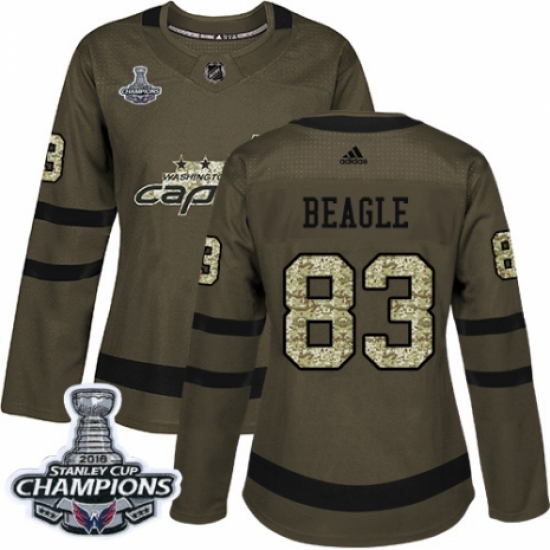 >Women's Adidas Washington Capitals #83 Jay Beagle Authentic Green Salute to Service 2018 Stanley Cup Final Champions NHL Jersey