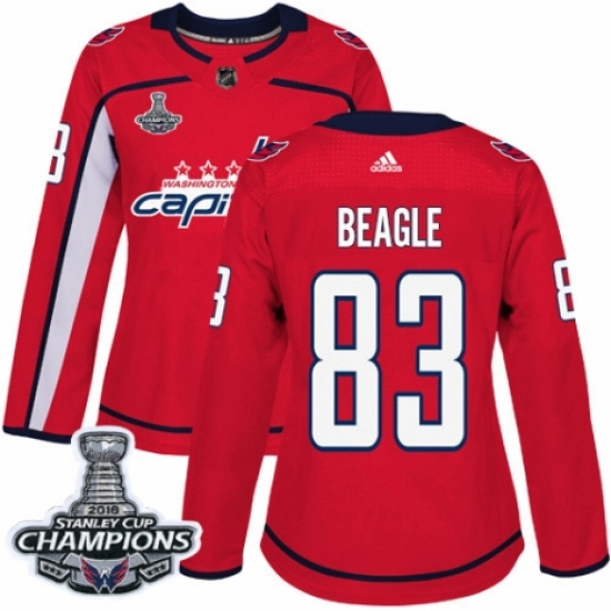 Women's Adidas Washington Capitals #83 Jay Beagle Authentic Red Home 2018 Stanley Cup Final Champions NHL Jersey