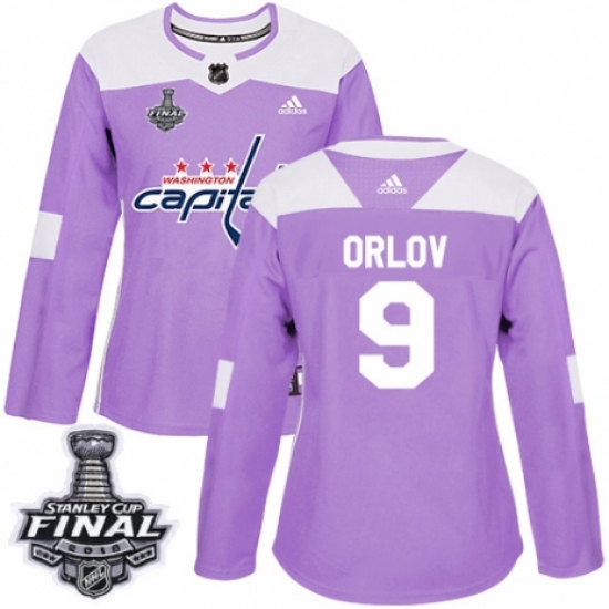 Women's Adidas Washington Capitals #9 Dmitry Orlov Authentic Purple Fights Cancer Practice 2018 Stanley Cup Final NHL Jersey