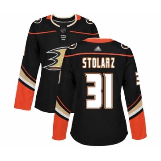 >Women's Anaheim Ducks #31 Anthony Stolarz Authentic Black Home Hockey Jersey