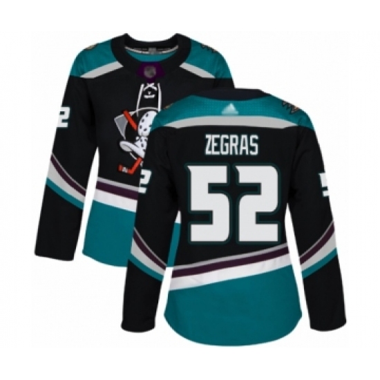 >Women's Anaheim Ducks #52 Trevor Zegras Authentic Black Teal Alternate Hockey Jersey
