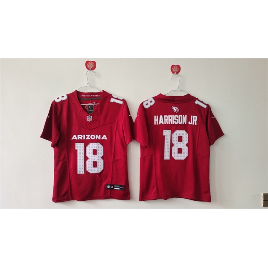 >Women's Arizona Cardinals #18 Marvin Harrison Jr Red 2024 F.U.S.E Stitched Jersey(Run Small)