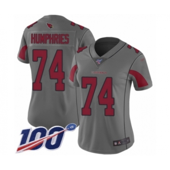 >Women's Arizona Cardinals #74 D.J. Humphries Limited Silver Inverted Legend 100th Season Football Jersey