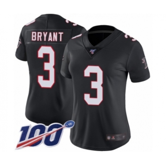 >Women's Atlanta Falcons #3 Matt Bryant Black Alternate Vapor Untouchable Limited Player 100th Season Football Jersey