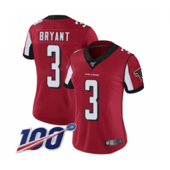 >Women's Atlanta Falcons #3 Matt Bryant Red Team Color Vapor Untouchable Limited Player 100th Season Football Jersey