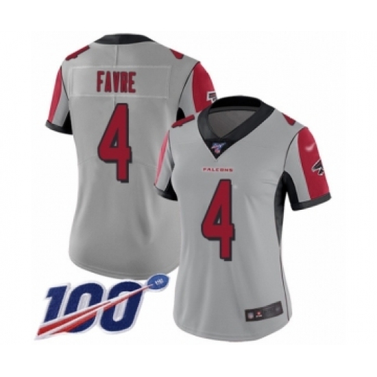 Women's Atlanta Falcons #4 Brett Favre Limited Silver Inverted Legend 100th Season Football Jersey