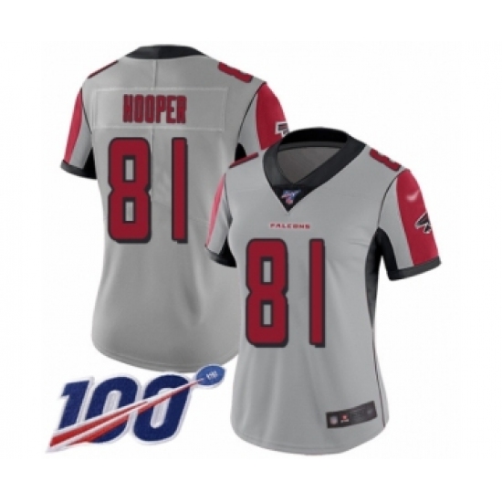 >Women's Atlanta Falcons #81 Austin Hooper Limited Silver Inverted Legend 100th Season Football Jersey