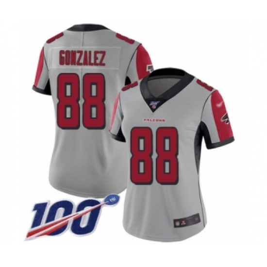 Women's Atlanta Falcons #88 Tony Gonzalez Limited Silver Inverted Legend 100th Season Football Jersey