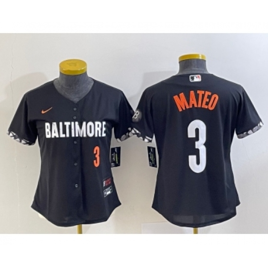 >Women's Baltimore Orioles #3 Jorge Mateo Number Black 2023 City Connect Cool Base Stitched Jersey 2