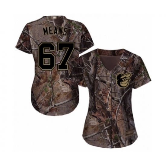Women's Baltimore Orioles #67 John Means Authentic Camo Realtree Collection Flex Base Baseball Jersey