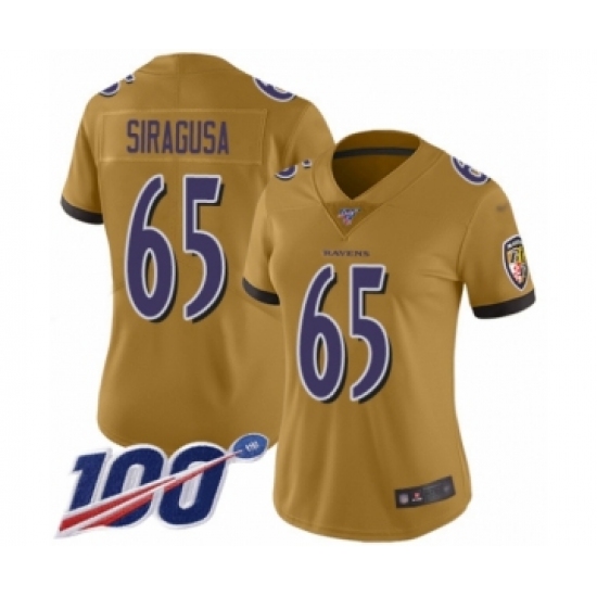 >Women's Baltimore Ravens #65 Nico Siragusa Limited Gold Inverted Legend 100th Season Football Jersey